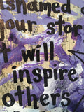 “Don’t be ashamed” is an original painting inspired by domestic violence awareness. This is dedicated to all the strong women out there that have made it through and inspire others to stand up for themselves.