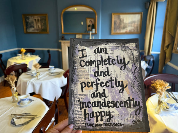 "I Am Completely and Perfectly and Incandescently Happy" is an original art piece inspired by the Jane Austen's Pride and Prejudice.