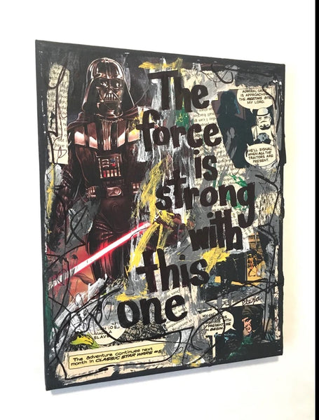 "The force is strong" inspired by the Star Wars movies by Lucas Films. This quote is probably one of the most iconic Darth Vader quotes.