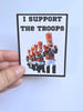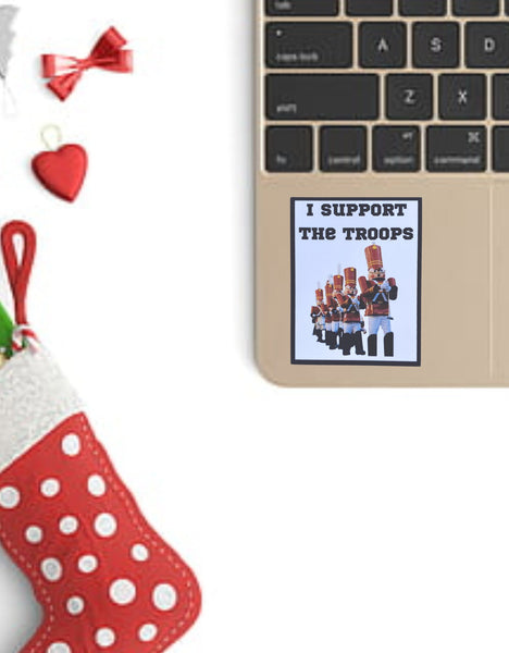 Featuring a bold, tongue-in-cheek āSupport the Troopsā quote, this design is perfect for Disney park lovers, parade enthusiasts, and anyone who appreciates sarcastic, edgy humor. Stick it on your laptop, notebook, journal, water bottle, or any surface that needs a dose of personality.