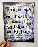 "Raindrops on Roses" is inspired by the Broadway musical and movie starring Julie Andrews, The Sound of Music. This music art print is a wonderful baby shower gift!
