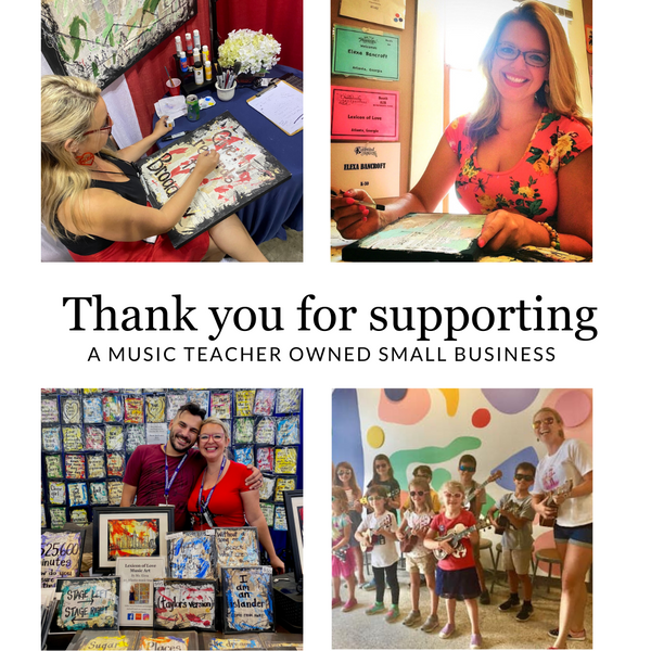 Music teacher, Elexa, of Lexicon of Love hand creates each piece in the shop in Atlanta.
